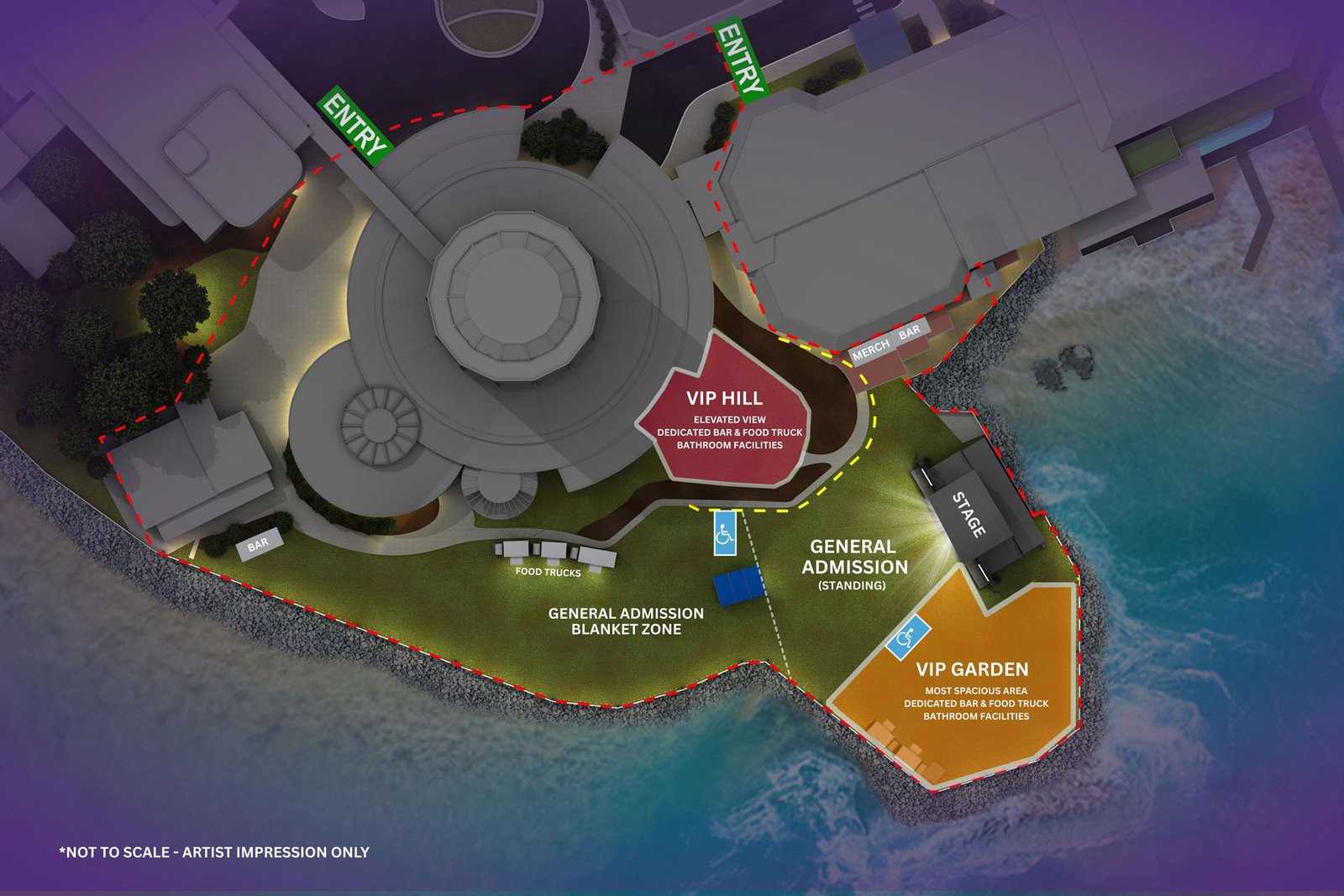 Positioned directly beside the stage, the VIP Garden offers the most spacious area on site. Guests will enjoy access to a private VIP bar and premium food offerings available for purchase, along with private bathroom facilities for added comfort. With unparalleled stage-side proximity and elevated amenities, the VIP Garden delivers the ultimate concert experience.